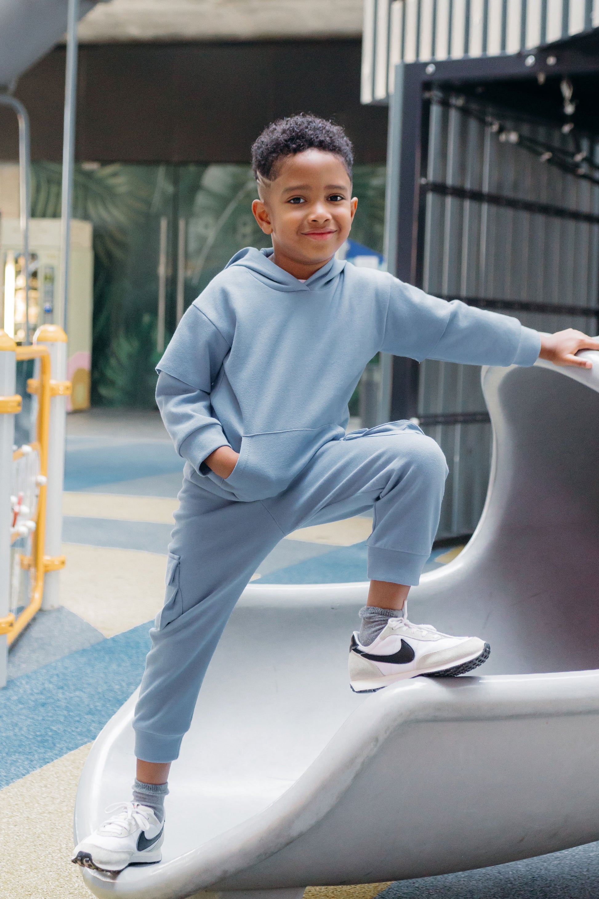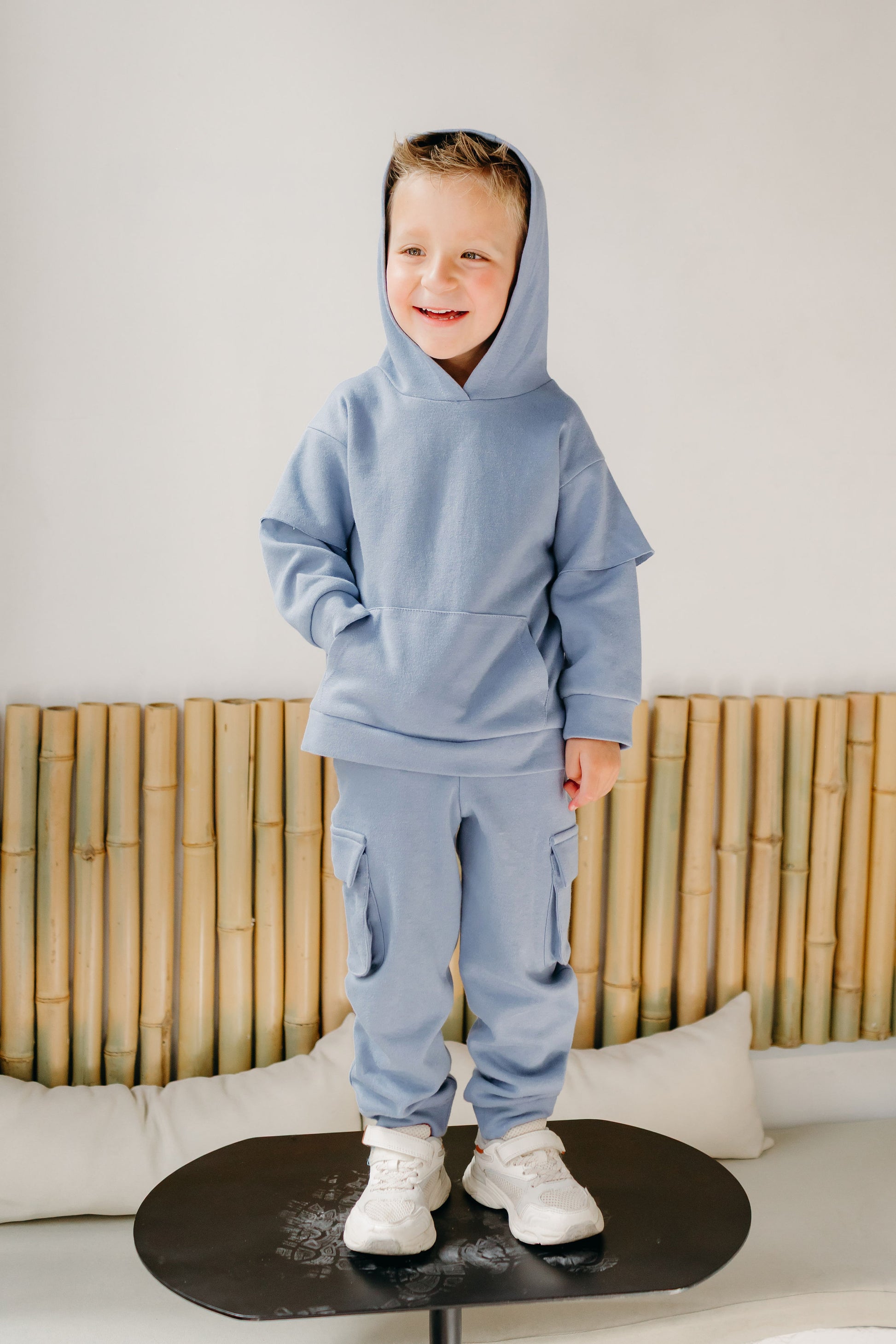 Sudadera doble manga con gorro, y jogger cargo.